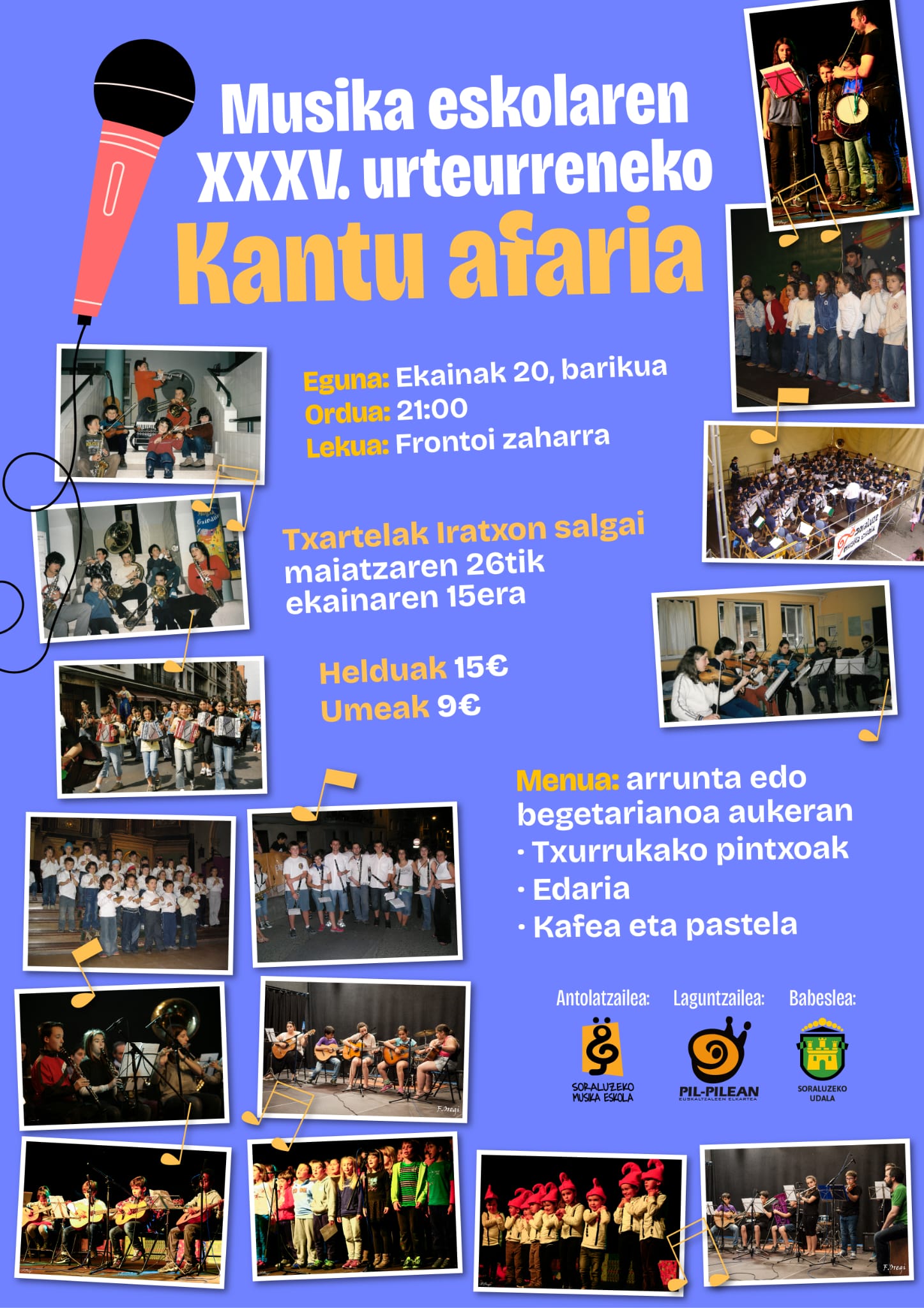 - Organizado por la Escuela de Música de Soraluze, celebrarán el XXXVº aniversario con una cena de canciones.