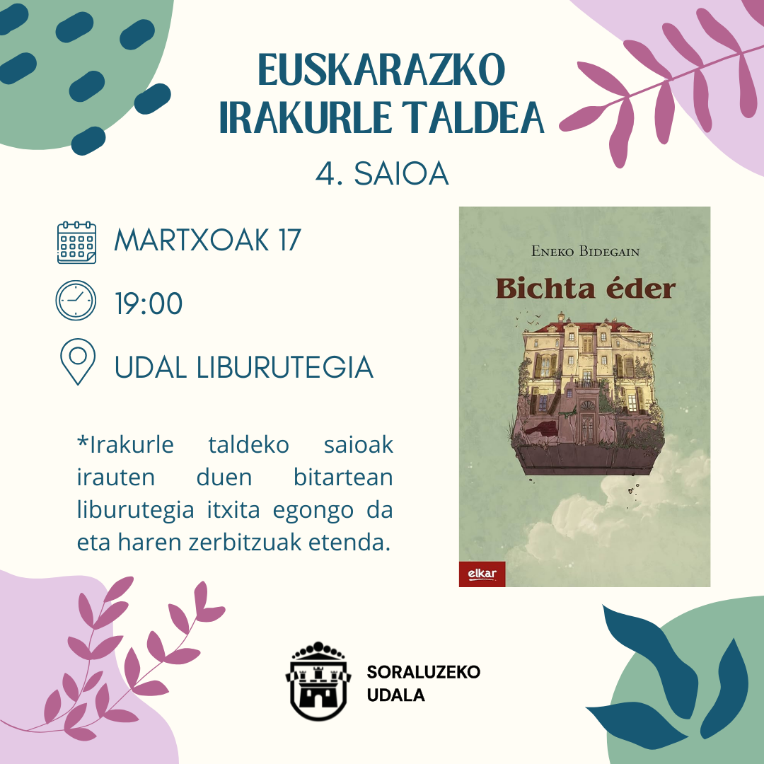 - https://www.soraluze.eus/es/agenda/euskarazko-irakurle-taldea-bichta-eder