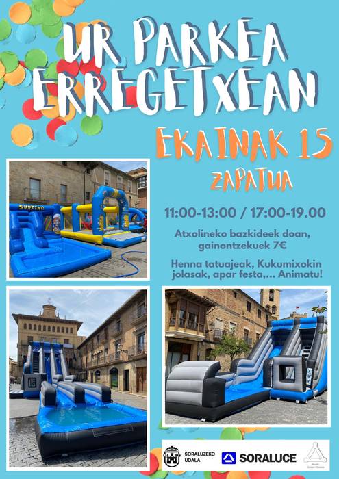 - Organizado por la asociación de padres y madres Atxolin, se instalará un parque acuático en Erregetxea.