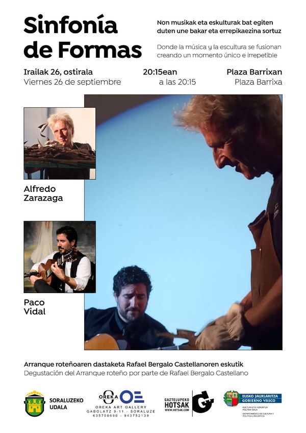 Tanto Zarazaga como Vidal improvisarán adaptándose al ritmo de la guitarra y del hierro, respectivamente. El sonido de los golpes del hierro y la melodía de la guitarra conformarán la preformance, única e irrepetible, y creada en el momento, que combinará escultura y flamenco.