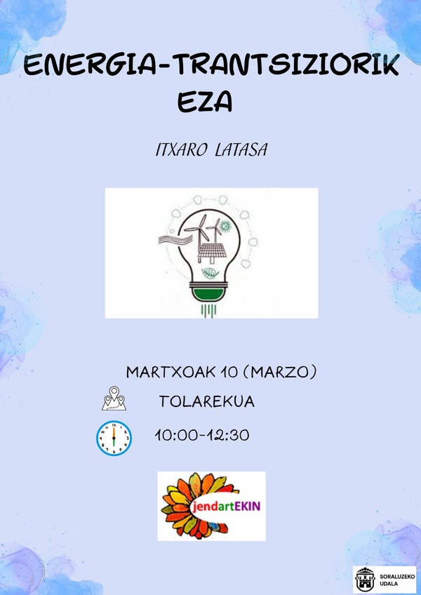 Este martes, 10 de marzo, tendrá lugar la charla "La no transición energética", programada dentro de jendartEKIN, para dar comienzo al nuevo curso del proyecto dirigido a personas mayores a 55 años que quieran intercambiar experiencias y adquirir nuevos conocimientos.