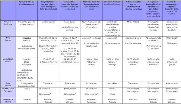 La Escuela de Empoderamiento de las Mujeres* de Soraluze anuncia su programación de octubre a enero