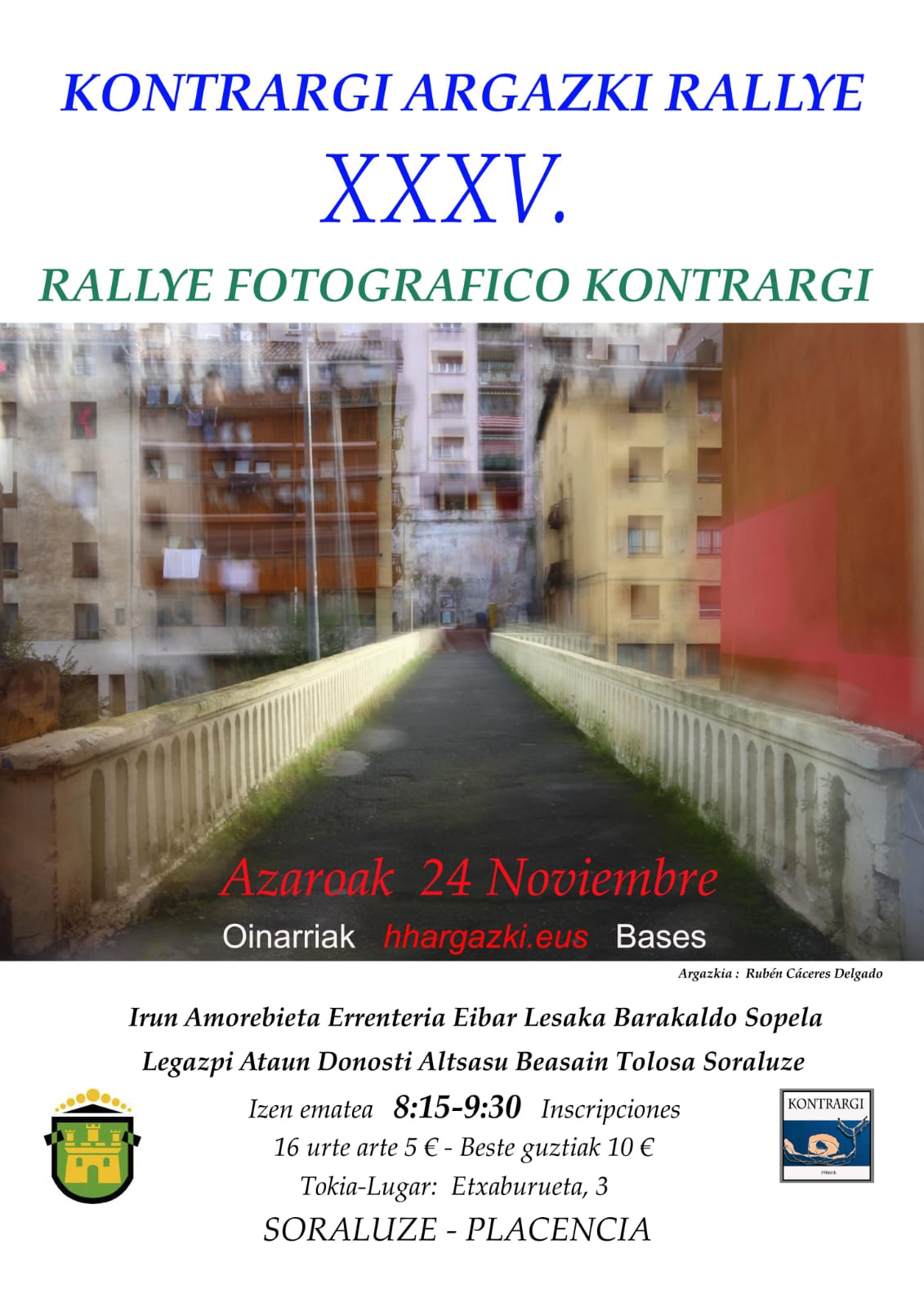 - Kontrargi Argazkilaritza Elkarteak antolatuta, Soraluzeko Argazki Rallyaren XXXV. edizioa egingo da; aurten, Blues Hotsak jaialdiarekin elkarlanean.