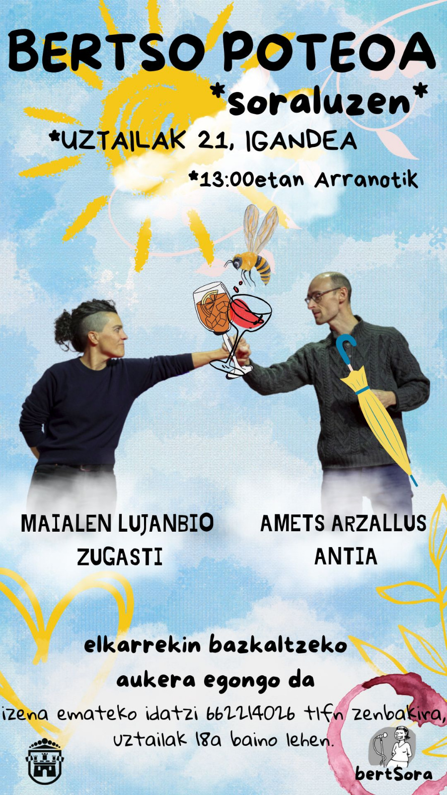- BertSorak antolatuta, bertso poteoa egingo da Arranotik hasita Maialen Lujanbio eta Amets Arzallusekin.