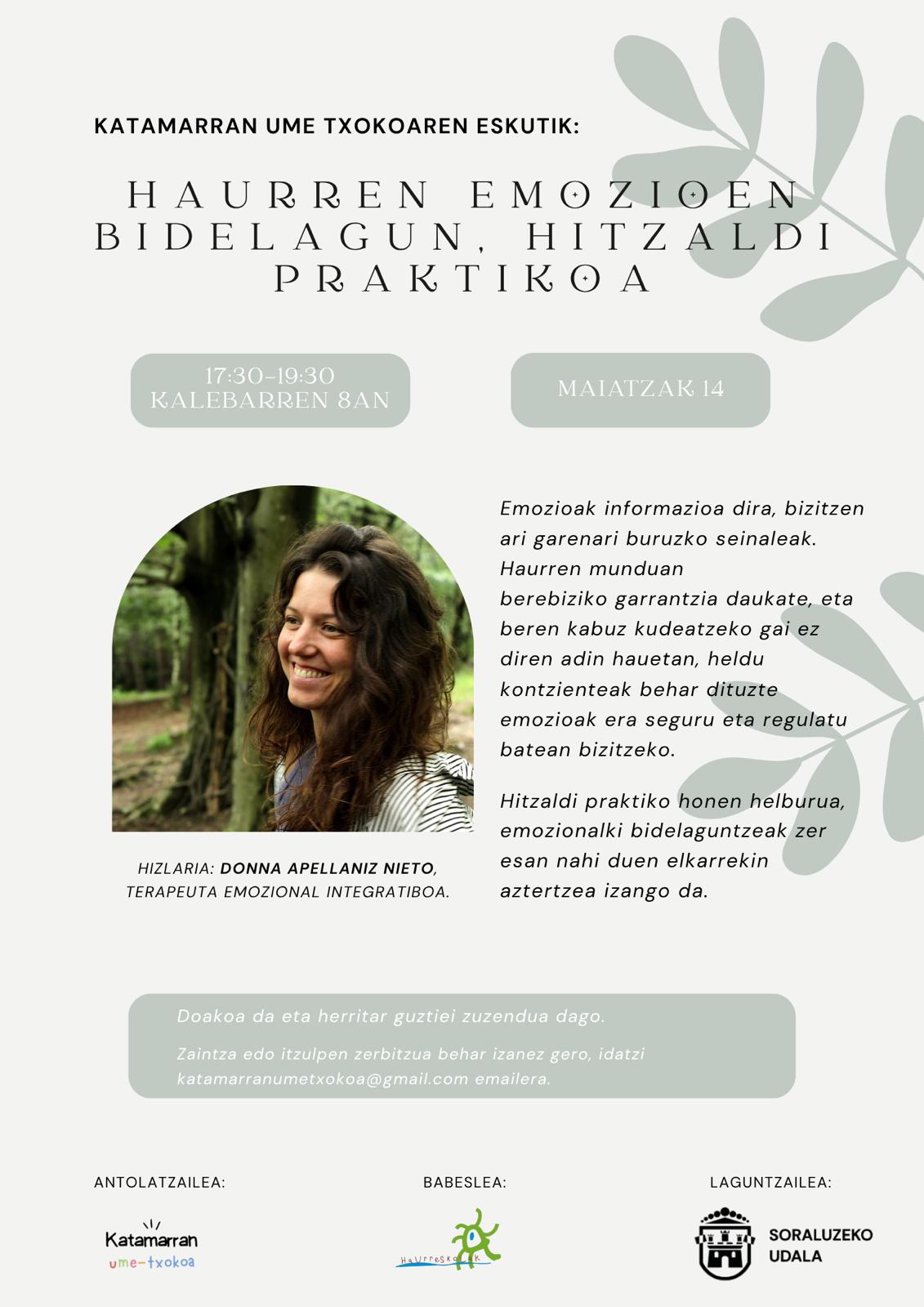Katamarran ume-txokoak, Soraluzeko haurreskolarekin elkarlanean antolatutako hitzaldia. Hizlaria Donna Apellaniz Nieto izango da. Hitzaldia doakoa eta herritar guztiei zuzendua egongo da.