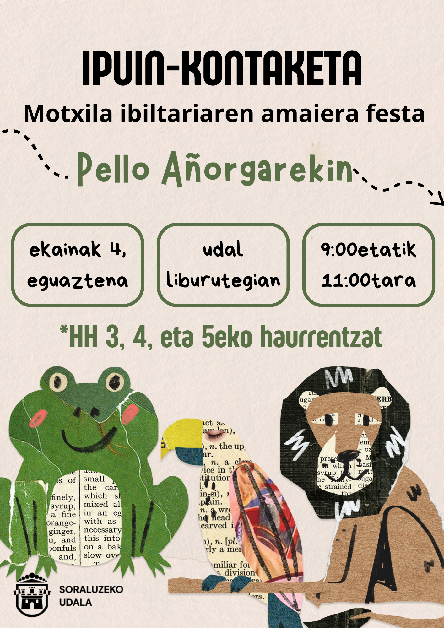 - Motxila Ibiltariaren proiektua eta liburutegira bisitak amaitzeko ipuin-kontaketa saioa, Pello Añorgaren eskutik.
