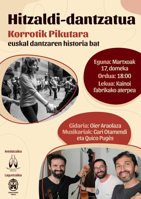 - Oier Araolazak gidatuta eta Gari Otamendi eta Quico Pugès musikariek alaituta, euskal dantzaren historiari buruzko hitzaldi dantzatua egingo da.