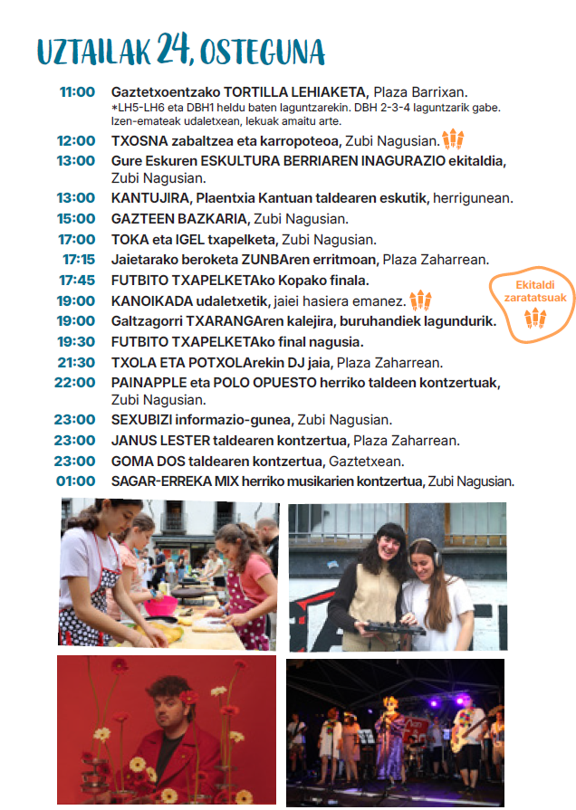 - Santiago eta Santa Ana jaien barruan, eguenerako, uztailaren 24rako programatutako egitaraua.