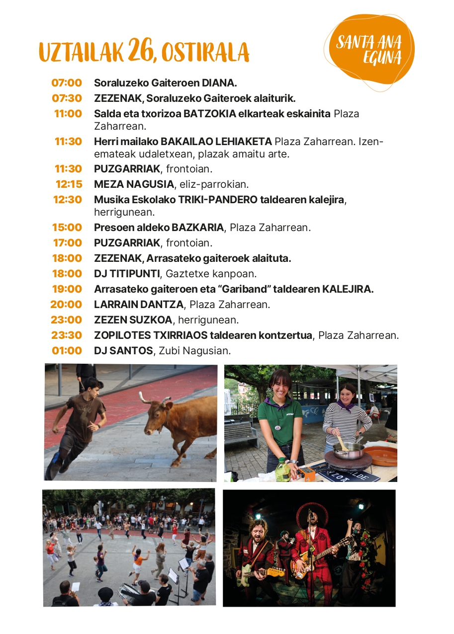 - Soraluzeko Santiago eta Santa Ana jaietako barixakuko, uztailaren 26ko, egitaraua.